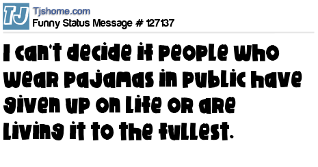 - # 193627 I can’t decide if people who wear pajamas in public have given up on life or are living it to the fullest.