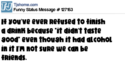 X says If you've ever refused to finish a drink because "it didn't taste good" even though it had alcohol in it I'm not sure we can be friends.