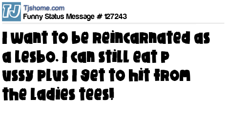X says I want to be reincarnated as a lesbo. I can still eat p ussy plus I get to hit from the ladies tees!