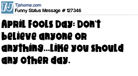 X April Fools Day: Don't believe anyone or anything...like you should any other day.
