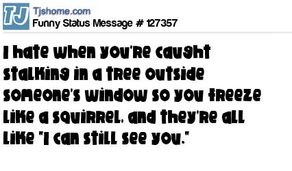 X I hate when you're caught stalking in a tree outside someone's window so you freeze like a squirrel, and they're all like "I can still see you."