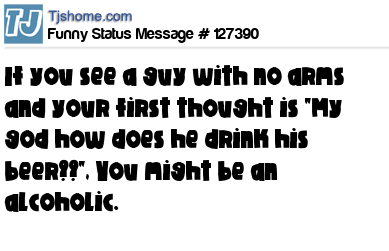 X is If you see a guy with no arms and your first thought is "My god how does he drink his beer??", You might be an alcoholic.