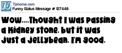 X says Wow....Thought I was passing a kidney stone, but it was just a jellybean. I'm good.