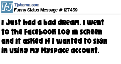 X I just had a bad dream. I went to the Facebook log in screen and it asked if I wanted to sign in using my Myspace account.