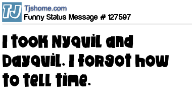 X I took Nyquil and Dayquil. I forgot how to tell time.