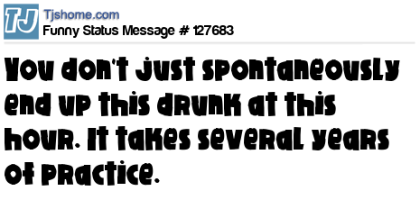 X says You don't just spontaneously end up this drunk at this hour. It takes several years of practice.
