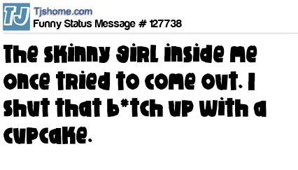 X says The skinny girl inside me once tried to come out. I shut that b*tch up with a cupcake.