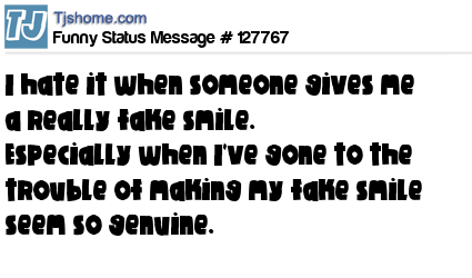 X says I hate it when someone gives me a really fake smile. Especially when I've gone to the trouble of making my fake smile seem so genuine.