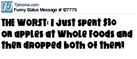 X says THE WORST: I just spent $30 on apples at Whole Foods and then dropped both of them!