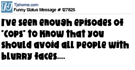 - # 99647 If the TV show "Cops" has taught me anything, it's to stay away from people with blurry faces....... they always seem to attract trouble.......