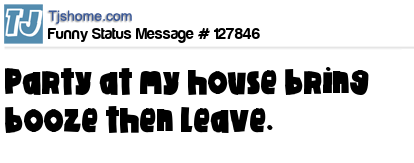 - # 15707 Party tonight, bring booze or chicks. Seperate, or one already in the other. Your call...