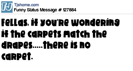 X says Fellas, if you're wondering if the carpets match the drapes.....there is no carpet.