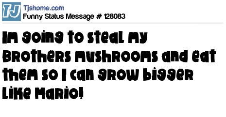 X is im going to steal my Brothers mushrooms and eat them so I can grow bigger like Mario!