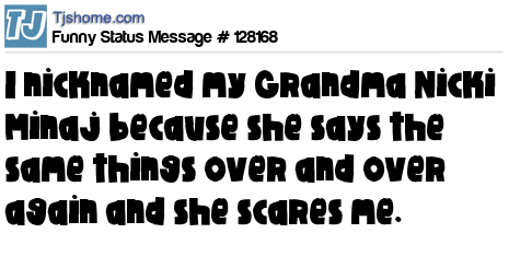 X says I nicknamed my Grandma Nicki Minaj because she says the same things over and over again and she scares me.