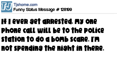 - # 73102 If I ever get arrested, my one phone call will be to the police station to do a bomb scare. I'm not spending the night there