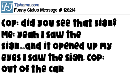 X says Cop: did you see that sign? Me: yeah I saw the sign,..and it opened up my eyes I saw the sign, Cop: out of the car