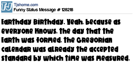 X Earthday Birthday. Yeah, because as everyone knows, the day that the Earth was formed, the Gregorian calendar was already the accepted standard by which time was measured.