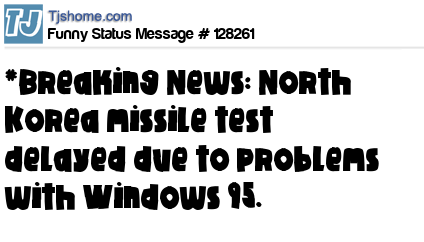 - # 128276 ***Breaking News: North Korea missile test delayed due to problems with Windows 3.1
