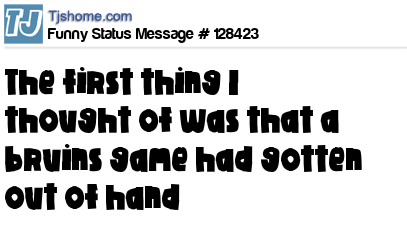 X is The first thing I thought of was that a bruins game had gotten out of hand