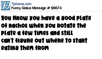 - # 74555 The signs of a good plate of nachos? When you turn your plate 3 or 4 times and have NO idea where to start!!