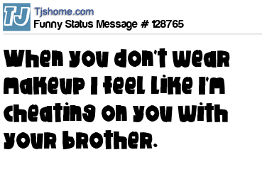 X says When you don't wear makeup I feel like I'm cheating on you with your brother.