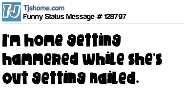 - # 110978 People go to the bar hoping for two things...to get hammered or to get nailed.