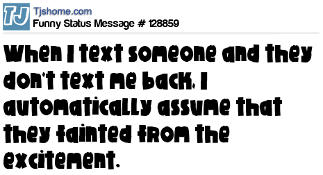 - # 85519 Ladies: You texted him but he hasn't texted back? Don't be too quick to assume he is ignoring you, instead assume he was obviously so excited to get your text message that he fainted.