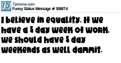 X says I believe in equality. If we have a 5 day week of work, we should have 5 day weekends as well dammit.