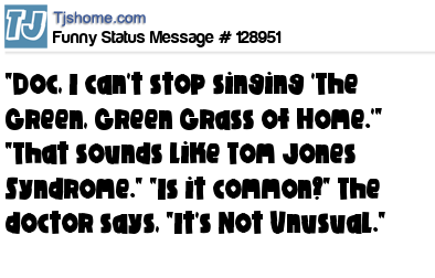- # 182762 I went to the doctor because I couldn’t stop listening to Tom Jones. He told me it’s not unusual