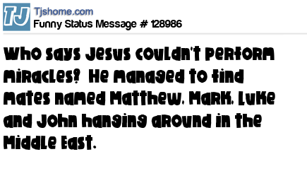 X is Who says Jesus couldn't perform miracles? He managed to find mates named Matthew, Mark, Luke and John hanging around in the Middle East.