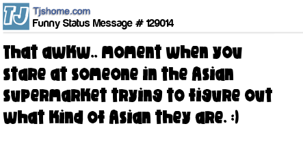 X That awkw.. moment when you stare at someone in the Asian supermarket trying to figure out what kind of Asian they are. :)