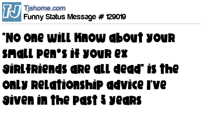X says "No one will know about your small pen*s if your ex girlfriends are all dead" is the only relationship advice I've given in the past 5 years