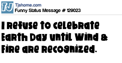 X says I refuse to celebrate Earth Day until Wind & Fire are recognized.