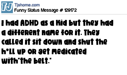 X is I had ADHD as a kid but they had a different name for it. They called it sit down and shut the h*ll up or get medicated with"the belt."