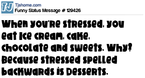 - # 72482 When you're stressed you eat ice cream, cake, chocolate, and sweets. Why? Because STRESSED spelled backwards spells DESSERTS. ;)