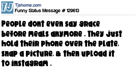 - # 110591 People Dont even say grace before meals anymore . They just Hold up Their Phones over the Plate , snap a Pic , & Post it on Ins tagram