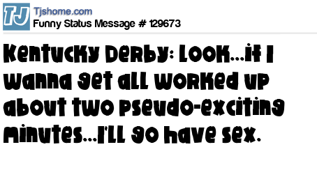 - # 205518 If you think about it, The Kentucky Derby is like NASCAR only slower and with poop.