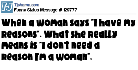 X says When a woman says "I have my reasons". What she really means is "I don't need a reason I'm a woman".