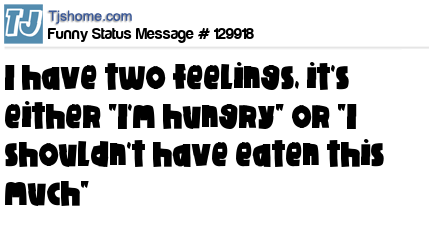 - # 139945 I only have two feelings, it's either "I'm hungry" or "I shouldn't have eaten this much"