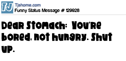 X says Dear Stomach: You're bored, not hungry. Shut up.