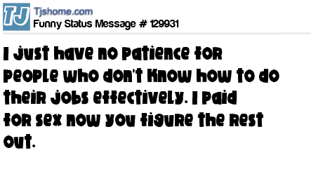 X says I just have no patience for people who don't know how to do their jobs effectively. I paid for sex now you figure the rest out.