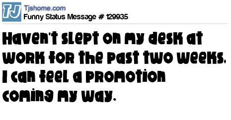 - # 130351 I've been sleeping at my desk for the past two weeks. ...I can feel a promotion coming my way.