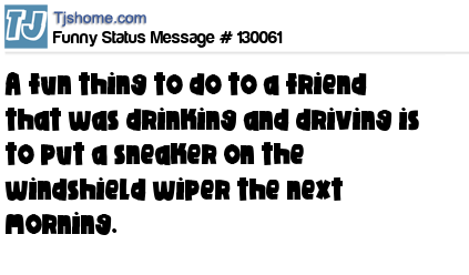 X is A fun thing to do to a friend that was drinking and driving is to put a sneaker on the windshield wiper the next morning.