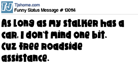 X says As long as my stalker has a car, I don't mind one bit. Cuz free roadside assistance.