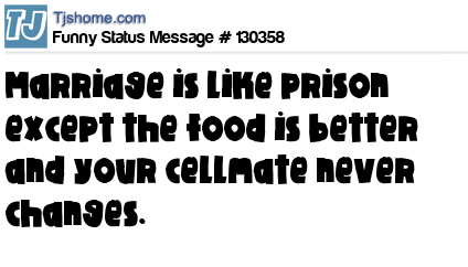 X says Marriage is like prison except the food is better and your cellmate never changes.