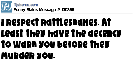 X says I respect rattlesnakes. At least they have the decency to warn you before they murder you.