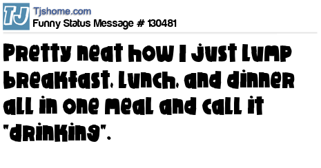 X says Pretty neat how I just lump breakfast, lunch, and dinner all in one meal and call it "drinking".