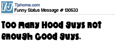 - # 87032 Too many hood guys not enough good guys..