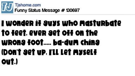X I wonder if guys who masturbate to feet, ever get off on the wrong foot..... ba-dum ching (Don't get up, I'll let myself out.)