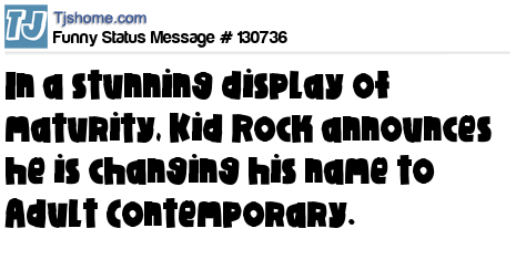 X In a stunning display of maturity, Kid Rock announces he is changing his name to Adult Contemporary.